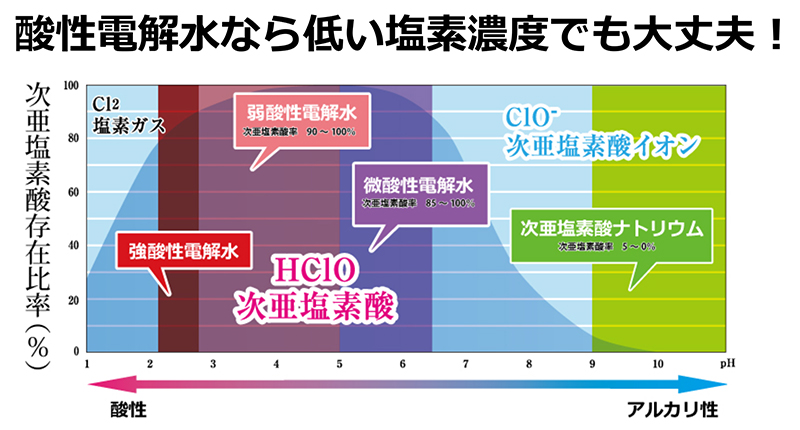 酸性電解水もアルカリ性同様にウイルス・細菌を不活性化させます。